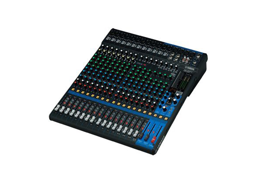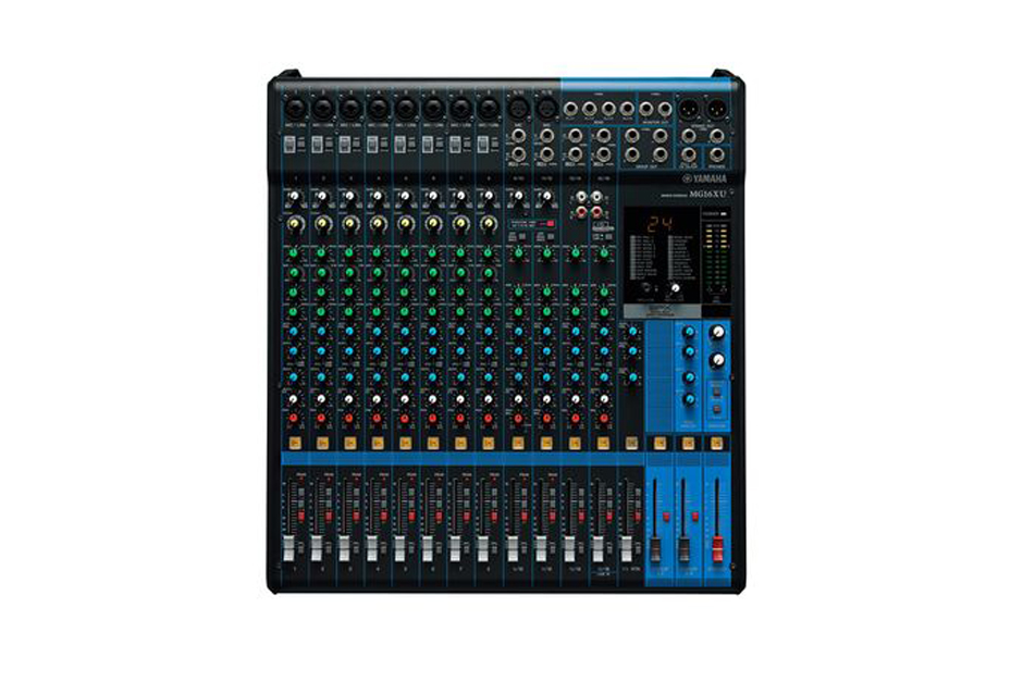 16通道调音台:10个话筒 / 16 个线路输入 (8 个单声道 + 4 个立体声) / 4 编组母线 + 1 立体声母线 / 4 AUX (包括 FX)